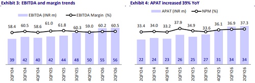 * The marine segment’s revenue jumped 237% YoY to INR6.4b and EBITDA surged 285% YoY to ~INR3.4b, driven by a significant increase in vessel count from 76 (Jun’24) to 127 (Sept’25). Together, these segments contributed significantly to overall revenue growth in 2QFY26.