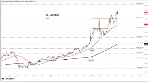 Aluminium trading range for the day is 350-361.4.