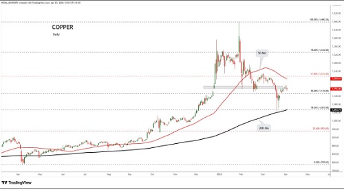 LME warehouse inventories falling to 418,675 tonnes as of March 27, the lowest level since July 2025.