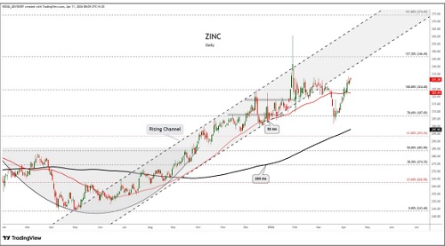 Zinc trading range for the day is 331.4-339.6.