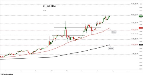 Aluminium gains as the continued blockage of the Strait of Hormuz threatens a prolonged disruption to Middle Eastern supply.