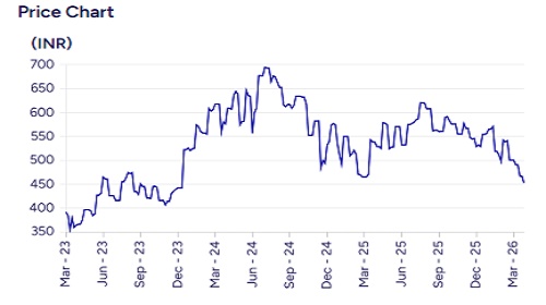 We believe Sanghipuram represents a strategically important asset within Ambuja’s western India network given its large limestone reserves, coastal logistics advantage and scope for efficiency improvement. While management has set an ambitious target of reducing variable costs by Rs500/t to ~Rs1,500/t at Sanghi resulting an EBITDA/t improvement to ~Rs1,800-2,000/t (from c. ~Rs1,200-1,500/t), we believe timely execution will be the key. Improving Railway connectivity to Kutch, jetty capacity expansion and ongoing transmission augmentation would help ACEM over medium term. We remain constructive on Ambuja’s long-term growth prospects given its initiatives on improving cost efficiencies and ongoing expansion strategy. Maintain BUY with TP of Rs640 valuing the company at 17x EV/Mar’27E EBITDA. At CMP, the stock is trading at 12.5x/10.7x EV on FY27E/28E EBITDA.