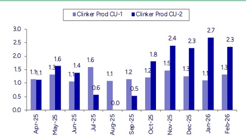 We visited Ambuja Cement’s Sanghipuram plant in Kutch (Gujarat), one of the largest integrated cement facilities with cement/clinker capacity of ~6.1mtpa/6.6mtpa (two kilns of 9,000tpd and 10,000tpd) and benefits from ~1Bt of high-quality limestone reserves. Management indicated that current operational cement capacity of ~17,000tpd could increase by ~2,500tpd through debottlenecking, taking capacity to ~20,000tpd (~7mtpa). The company has planned ~Rs6bn capex focused on efficiency improvements including WHRS (~18MW). Sanghipuram also benefits from coastal logistics through its jetty, enabling clinker and cement movement to markets such as Tuticorin, Dahej and Mumbai, with logistics costs of ~Rs700/t Vs pan-India average of ~Rs900/t. The plant also has ~130MW captive power capacity, supporting cost competitiveness. Management reiterated its focus on value over volume-led growth and expects further cost reductions ahead (QoQ).