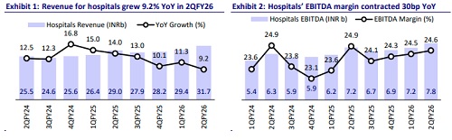 * The hospital business recorded limited IP/OP volume YoY growth due to a high season-related base in 2QFY25. Lower patient flow from Bangladesh further impacted growth on a YoY basis.