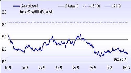 - AFL stands at an inflection point, transitioning from consolidation into profitable scale-up with a sharper focus on five power brands. This phase of growth will be driven by scaling up core brands, expanding adjacencies profitably, and driving operating leverage. USPA is evolving into a full lifestyle brand, with a third of its revenue coming from non-apparel, while Tommy and CK are strengthening their premium positioning with mid-teen EBITDA margins. Arrow and Flying Machine are entering a scale-up phase through sharper brand positioning and modern retail formats. Collectively, these initiatives are expected to drive ~13% revenue CAGR and ~190bp margin expansion over FY26-28E, taking pre-Ind AS EBITDA margin to 10.3% by FY28E.