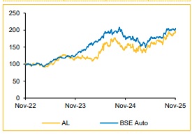 We expect AL’s diversified portfolio, focus on premiumisation and improving export mix to drive sustained revenue and margin growth. With a revival in fleet replacement demand, infrastructure momentum and an expanding alternative fuel lineup, the company is well-positioned to deliver profitable, long-term growth in FY26E and beyond.