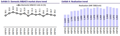 * Ashok Leyland (AL)’s 2QFY26 PAT stood at INR8b. It was 8% ahead of our estimate, primarily driven by a higher-than-expected other income, even as EBITDA came in line. AL’s margin improved 50bp YoY to 12.1% and was a function of improved mix and industry pricing discipline.