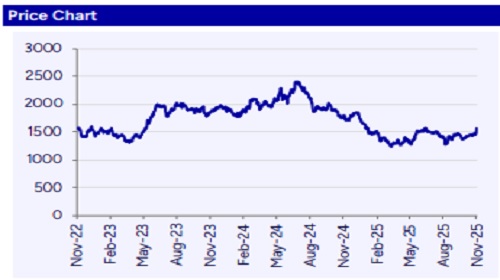 Astral Ltd (ASTRA) has reported robust volume growth of 20.6% in the plastic pipe segment in weak demand scenario. Its plumbing EBITDA margin expanded by ~70bps YoY to 19.0%, with EBITDA per kg for the plastic pipe segment at Rs 34.8. Company maintained its double-digit volume growth guidance in the piping segment with margin of 16-18%. We anticipate ASTRA will achieve 14.7% volume growth in its P&F business. Astral has appointed a new CEO for its UK adhesives business and expects a steady recovery ahead. The company also expects the imposition of ADD by Nov’25, which could lead to a Rs 5–6/kg increase in PVC prices, likely boosting volumes further. We estimate sales/EBITDA/PAT CAGR of 14.6%/16.8%/21.6% over FY25-28E. We upward revise ASTRA FY27/28E earnings by 2.6%/1.9%. Maintain ‘BUY’ rating with revised DCF-based TP of Rs1,778 (Rs1,727 earlier).