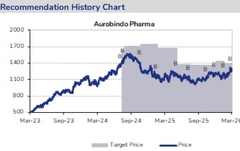 * Financial implication and valuation: In our understanding, the company has two major launches expected over the next 12 months – generic Spiriva Handihaler (~USD 1bn market) and generic Advair Diskus (~USD 600mn market; approved in Jan’26). These products have limited competition and can potentially add ~USD 175mn cumulatively at +40% EBITDA margin to Aurobindo’s FY28 top line. This can potentially aid in 152bps EBITDA margin expansion over FY26–28 for Aurobindo. Accordingly, we have adjusted our estimates upwards. We remain positive on the company with expected Revenue/EBITDA/PAT CAGR of 17/21/26% over FY26– 28 and believe that the stock is undervalued at 13x FY28 EPS (versus peer average of 23x PE FY28). We believe RoIC is set to expand by ~470bps over the next two years as the company moves to higher-RoIC segments (namely, Pen-G, biosimilars, biologics deal with Merck, and Lannett acquisition, Adquey launch), paving the way for multiple expansion in the coming years. Thus, we maintain BUY with an updated TP of INR 1,610.