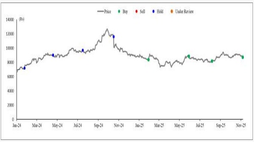 Current TP: Rs 9,765/share (Earlier TP: Rs 9,360/share)