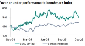 * Despite inclement weather, Berger achieved 8.8% YoY volume growth in Q2FY26, while value grew 1.1% YoY owing to higher contribution from tile adhesives.