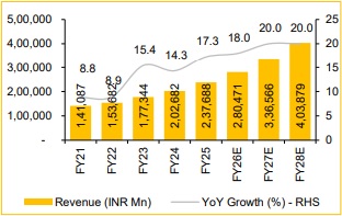 Revenue expected to expand 19.3% CAGR over FY25-28E