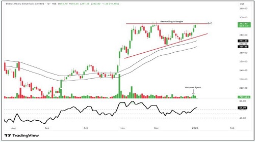 Buy Bharat Heavy Electricals Ltd CMP 293.00 Buy Price 293.00 Target 313.00 Stop loss 282.00 Holding Periond 1 Month