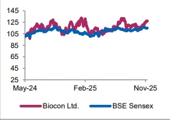 • Operational Performance: Biocon reported an in-line performance for Q2FY26, with revenue rising 19.6% YoY and 9% QoQ to Rs 4,296 Cr, driven by strong traction in biosimilars (up 24.7% YoY) and generics (up 24.7% YoY). Growth in biosimilars was led by the successful launch and market traction of bUstekinumab, bAspart, bBevacizumab, and bAflibercept across key markets.