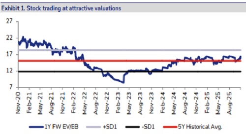 Biocon reported a strong 2QFY26 with revenue/EBITDA growing 20%/20% YoY, in-line with expectations, and PAT turnaround from losses. EBITDA Margins remained flat YoY at 19%. Growth was led by the Biosimilars and Generics segments. Biosimilars grew a stellar 25% YoY, driven by market share gains and successful launches including bUstekinumab, bAspart, bBevacizumab and bAflibercept, with bDenosumab launch imminent following FDA approval and Amgen agreement. The Generics business reported strong 24% YoY growth, led by new launches such as Liraglutide, Dasatinib and Sacubitril+Valsartan, with margin recovery aided by capacity ramp-up and improved product mix. The CRDMO revenue grew a moderate 2% YoY with strength in research services offset by temporary biologics inventory correction; the segment added its first global Phase-III clinical trial win and is progressing on ADC suite and Bayview biologics facility. Structured debt settlements with Goldman Sachs, Kotak and Edelweiss are already reflecting in reduced finance costs and INR 3bn annual interest cost savings are guided for FY27. We have revised our FY26/27/28 estimates on account of biosimilar ramp-up, the muted EBITDA trajectory and higher than anticipated minority payments. We remain confident on the company’s future prospects owing to the biosimilar scale-up, new launches, improving leverage and balance sheet strengthening. Thus, we maintain BUY, valuing the company using SOTP methodology to arrive at a TP of INR 476.