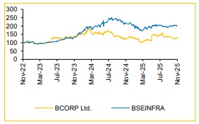 We maintain our BUY rating on BCORP with a TP of INR 1,650/share. Our Volume, Realisation, EBITDA/t and EBITDA assumptions remain unchanged (Exhibit 2). We continue to be constructive on BCORP owing to sector tailwinds, such as 6–8% expected demand growth in the industry and healthy pricing. We are optimistic on the basis of: 1) Expansion drive to increase capacity by 7.5mtpa to 27.5mtpa by FY29E, 2) Strategy towards increasing blended cement share, 3) Sharpening focus on premium products and trade sales to lift realisation and 4) Cost-saving initiative which would drive opex lower by ~INR 200/t over the next couple of years. Hence, ROCE (ex-CWIP) expands by 713 bps, from 6.2% in FY25 to 13.3% in FY28E.