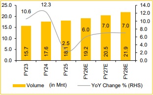 Volume expected to reach 21.9 Mnt in FY28E???????