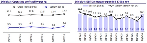 * EBITDA margin came in at 10.1% in 2QFY26 (up 170bp YoY and 320bp QoQ) vs. our estimate of 8.7%.