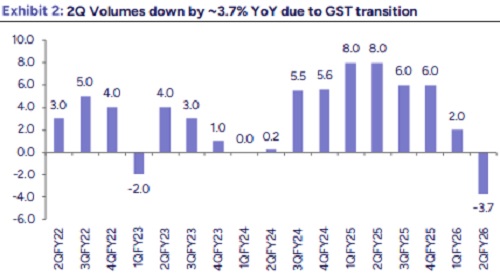 * ~GST transition impacts 2Q sales by 2-2.5%, expect 2H26 volumes to grow in high single/ low double digits, stable RM to sustain margins