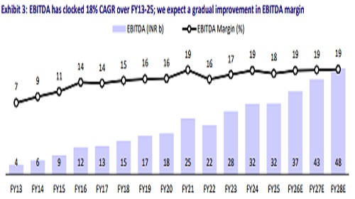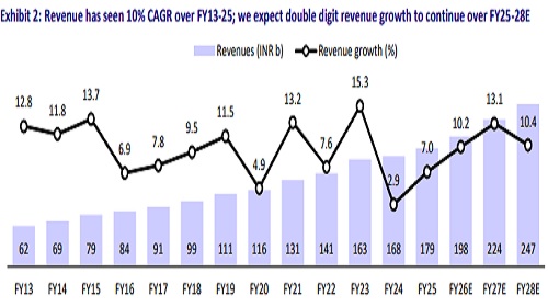 * Mr. Varun Berry, Vice Chairman, Managing Director & CEO, has tendered his resignation after a 13-year stint with the company. The board has accepted his resignation and waived his notice period and relieved with immediate effect. Britannia (BRIT) has been one of India’s best turnaround stories, with massive success in execution, growth, share gain, cost efficiencies, and supply chain. Under his leadership, BRIT focused on five strategic planks: distribution, marketing, innovation, cost efficiencies and developing adjacent businesses. The business at times (before his tenure) was considered a commodity business with a weak operating margin profile. The same changed significantly: EBITDA margins jumped from 7% in FY13 to 18% in FY25 (peak of 19% in FY21) and PAT margins leapfrogged from 4% in FY13 to 12% in FY25 (peak of 14% in FY21). During his tenure, the revenue, EBITDA, PAT and market-cap have seen a CAGR of 10%, 18%, 20% and 25% during FY13-FY25.