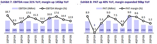 * For 1HFY26, the pre-IND AS EBITDA stood at INR729m (up 2% YoY) with a margin of 10% (down 70bp YoY).