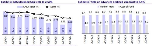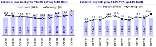 * Reported credit cost stood at 0.68% vs. the bank’s guidance of 0.9% for FY26. SMA book moderated to 0.65% in 2QFY26 from 0.8% in 1QFY26.
