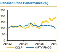 Valuation and View: The company offers a compelling medium-term growth story, driven by premiumisation (FDC, small packs, B2C) and capacity ramp-up post 2x expansion. This supports EBITDA/PAT CAGR of 16%/24% (FY26–29E), aided by stable coffee prices and improving product mix. With the capex cycle largely complete, FCF recovery and deleveraging are expected to drive ROE expansion to ~20–21% by FY29. We initiate CCLP with a BUY rating and a one–year DCF-based target price of INR 1,315 per share implying an upside of 20% upside from the existing level, supported by a reasonable ~27x FY28E P/E (Implied