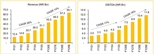 Post elevated coffee prices in FY25, recent stabilization in coffee prices (down ~13%/33% YTD and YoY) is positive enabling longer contracts, lower working capital needs and better demand visibility. This underpins 17–18% EBITDA margin and 16% EBITDA CAGR over FY26–29E.