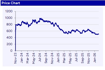 We estimate revenue/EBITDA/PAT CAGR of 12.7%/17.2%/19.6% for FY26-28E. We downward revise FY27/FY28 earning estimate by 16.9%/13.3% factoring supply constraints in the steel category and underutilization of glass plant continue for couple of quarters. We assign SOTP-based TP of Rs621 (earlier Rs732), implying PE of 30x FY27E. Maintain “BUY.”