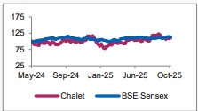 The company launched its in-house brand, Athiva, rebranding Duke’s Retreat, Khandala, as the first property under this platform. The brand focuses on joy, wellness, and sustainability, catering to Millennials and Gen Z travellers, with plans to add five hotels totalling around 900 keys under this banner. Chalet remains on track with its development pipeline, with Taj Delhi expected to launch in H1FY27 and Cygnus II by the Q4FY27. It has also repaid Rs 200 Cr of promoter loans, signalling financial prudence, and plans a Rs 2,500 Cr capex over the next three years to support growth. Under the Koramangala residential project, around 150 units have been handed over In H1FY26, with the remainder targeted for delivery in FY27; We have factored in full revenue related to residential units in FY27E instead of FY28E.