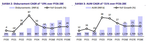 * Additionally, the retail mortgage portfolio, including LAP, home loans, and SBPL, has also delivered strong disbursement growth, supported by sustained housing demand and healthy SME credit traction. Hence, we expect an AUM growth of ~21% in the coming quarter and model an AUM CAGR of ~21% over FY26-28.
