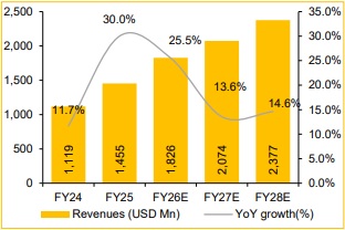 Revenue expected to grow at 17.8% CAGR over FY25-28E