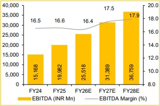 EBITDA expected to grow at 22.5% CAGR over FY25-28E