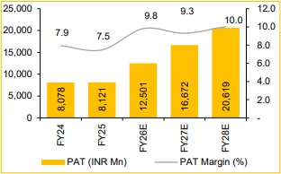 PAT expected to grow at 36.4% CAGR over FY25-28E