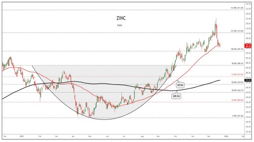 Zinc dropped as China’s zinc output in November rose 13.3 percent year-on-year to 654,000 metric tons.