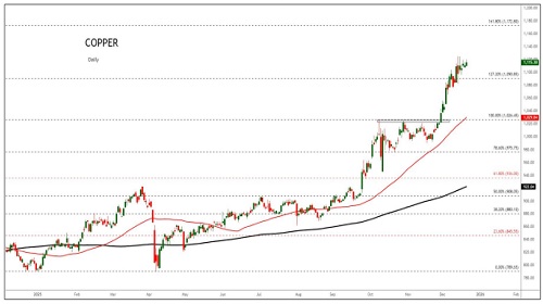 Copper rose as structurally tight supply conditions and optimism around long-term infrastructure demand continued to support.