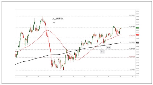 Aluminium gains supported by both supply concerns and strong demand as operating rates improve.
