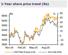 Craftsman (CAL) reported a strong Q2, with revenue up ~65% YoY, at Rs20bn, led by robust growth in the PT/AP segments (+24%/+107% YoY). EBITDA at Rs3bn (EBITDAM up by 20bps QoQ to 15.1%) was led by strong margin expansion in the SA AP segment (which the mgmt highlighted as sustainable). Also order book CAGR of ~20% is expected over the next 3Y, led by existing customers (manufacturing capacities to expand ~50%). CAL is committed to match such demand via calibrated investments, given a minimum 20% pre-tax RoCE on a mature basis. We believe a sustained scale-up in AP (Bhiwadi/Hosur capacities nearing full capacity by H2FY27), strong traction in PT (50%order book in place for large-engine castings; on track for USD100mnpa revenue from FY29), and ongoing turnaround at Sunbeam (double-digit margin by FY27 vs 6% now) should drive CAL’s next leg of growth/profitability. We build in 21/27/49% revenue/EBITDA/EPS CAGR over FY25-28E and revise FY26E-28E EPS by 10-14%; we believe current valuations are attractive (~47% discount to BHFC’s 19x EV/EBITDA Sep-27E), and offer strong re-rating potential (akin to BHFC) led by diversified growth, better ROCE, and healthy FCF generation. We retain BUY and raise TP by ~15% to Rs9,300, at 15x Sep-27E EV/EBITDA.