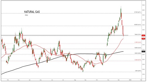 Natural gas dropped as traders priced in milder weather, softer demand expectations, and near-record supply.