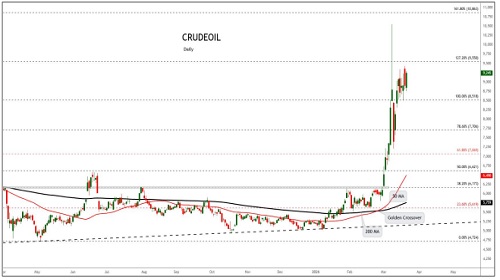 Crudeoil trading range for the day is 7131-10227.
