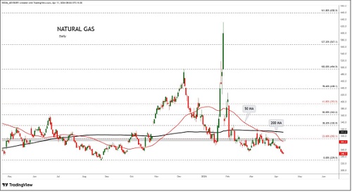 Average gas output in the U.S. Lower 48 states has risen to 111.1 bcfd so far in April, up from 110.4 bcfd in March.