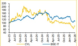 Operational Levers Support Margin; 15% EBITM Guidance Intact: Cyient DET delivered resilient Q4FY26 EBITM of 12.4%, while Consol. margin moderated to 9.5% due to continued investments in Semiconductor business (Q4 EBIT loss: USD 2.8 Mn). Management reiterated its 15% EBITM target by Q4FY27E, supported by pricing gains, AI-led productivity and structural cost optimisation, with forex tailwinds aiding offset of wage inflation. We view margin trajectory to remain intact despite near-term investment drag and macro volatility.