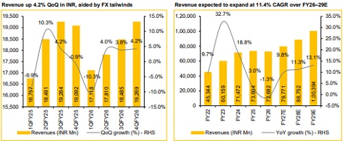 * Revenue for Q4FY26 came in at INR 14.9 Bn, up 0.8% QoQ and 7.4% YoY (vs CIE est. at INR 15.2 Bn)