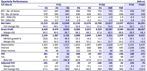 * Demand remained soft in 3QFY26. PH same-store sales are likely to decline by 2.5%. We model 4 store additions and 1% revenue decline for PH.