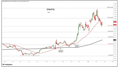 Buy Dhaniya Apr @ 10400 SL 10200 TGT 10600-10800. NCDEX - Kedia Advisory