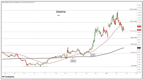 Dhaniya trading range for the day is 10376-11808.