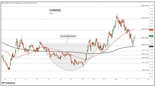 Turmeric trading range for the day is 15042-16730.