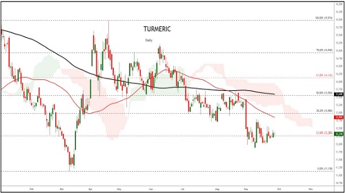 While downside capped as recent rainfall has caused damage to standing turmeric crops in major growing regions.