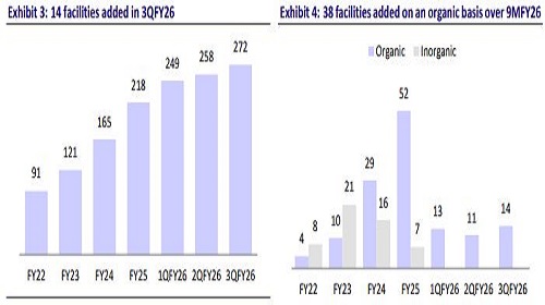 * The company expanded its network to 253 facilities across 148 cities, with 14 new greenfield facilities commissioned during the quarter, and a total of 38 facilities added in 9MFY26.