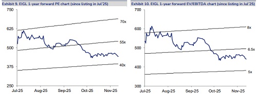 * Reiterate BUY rating on EIGL with unchanged TP of INR 550: We reiterate BUY with unchanged TP of INR 550/share based on 40x FY28E P/E as we expect EIGL to deliver a CAGR of ~30%/34%/32% in revenue/EBITDA/PAT over FY25-28, driven by: a) 29% CAGR in merchant volume on account of strong capacity expansion; and b) EBITDA margin improvement to 38% in FY28 (from 35% in FY25% and 24% in FY24) due to rise in proportion of revenue from highmargin argon. At CMP, EIGL is trading at ~32x FY28 P/E and 23.8x FY28 EV/EBITDA. (vs. Linde India trading at valuation of ~54x FY28 P/E and 28.2x FY28 EV/EBITDA despite its EBITDA/PAT CAGR expectation being lower than EIGL with a similar RoE profile). Key risks: a) decline in price/volume of argon; b) lower volume growth due to delay in start of new capacity and/or slower ramp-up; c) high customer, industry and region concentration.